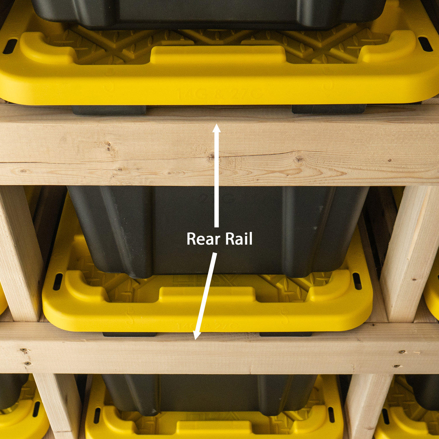 The majority of racks being sold use thin 2″x2″ rails to hold the totes. Not only are these weak and don’t provide good support for the totes and rack, they are also prone to splitting. The TUFF Tote Rack is only constructed of 2″x4″ rails.